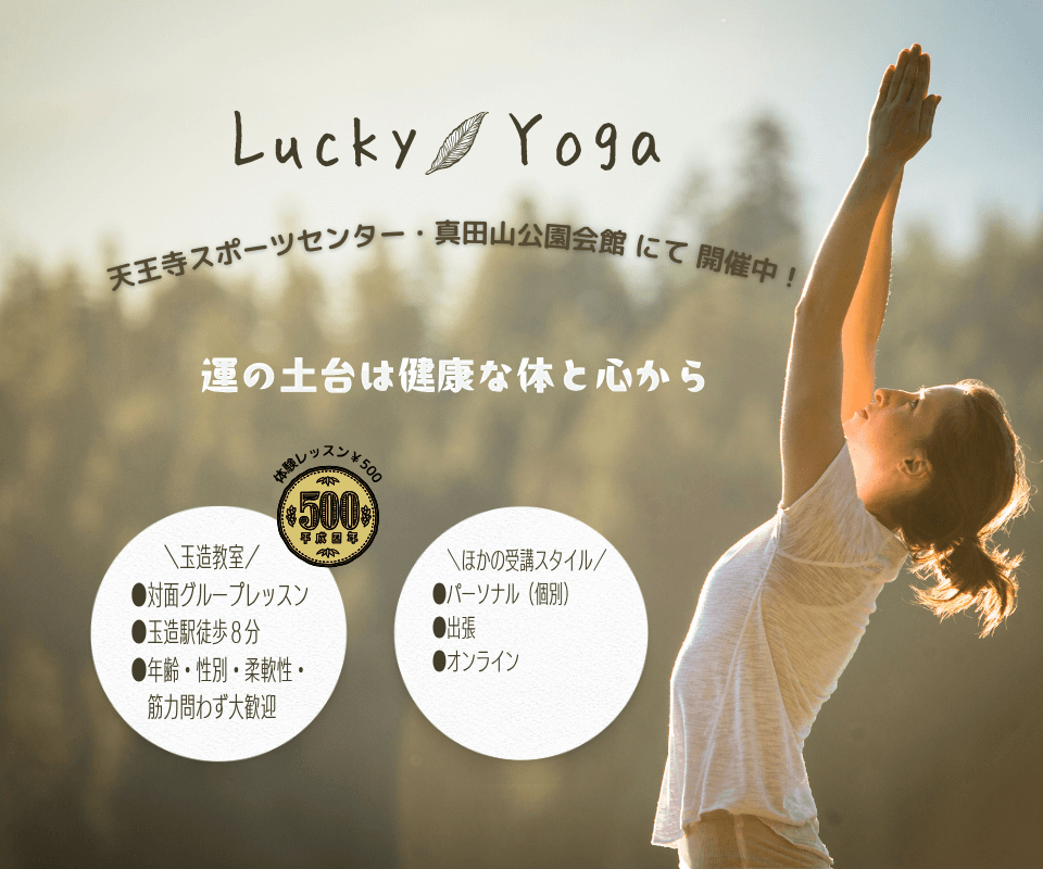 2019年、玉造で誕生したラッキーヨガ。コロナ禍も生徒さんのおかげで乗り越え、口コミで仲間が増え、徐々に広い場所へと会場を変更してきました。