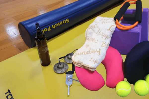 ヨガブロック・バンド・ボール・ストレッチポールなどを使い、体がかたい方も無理なく参加できます。